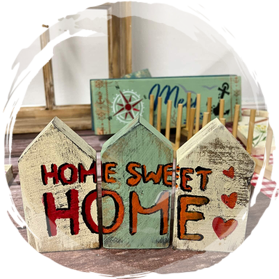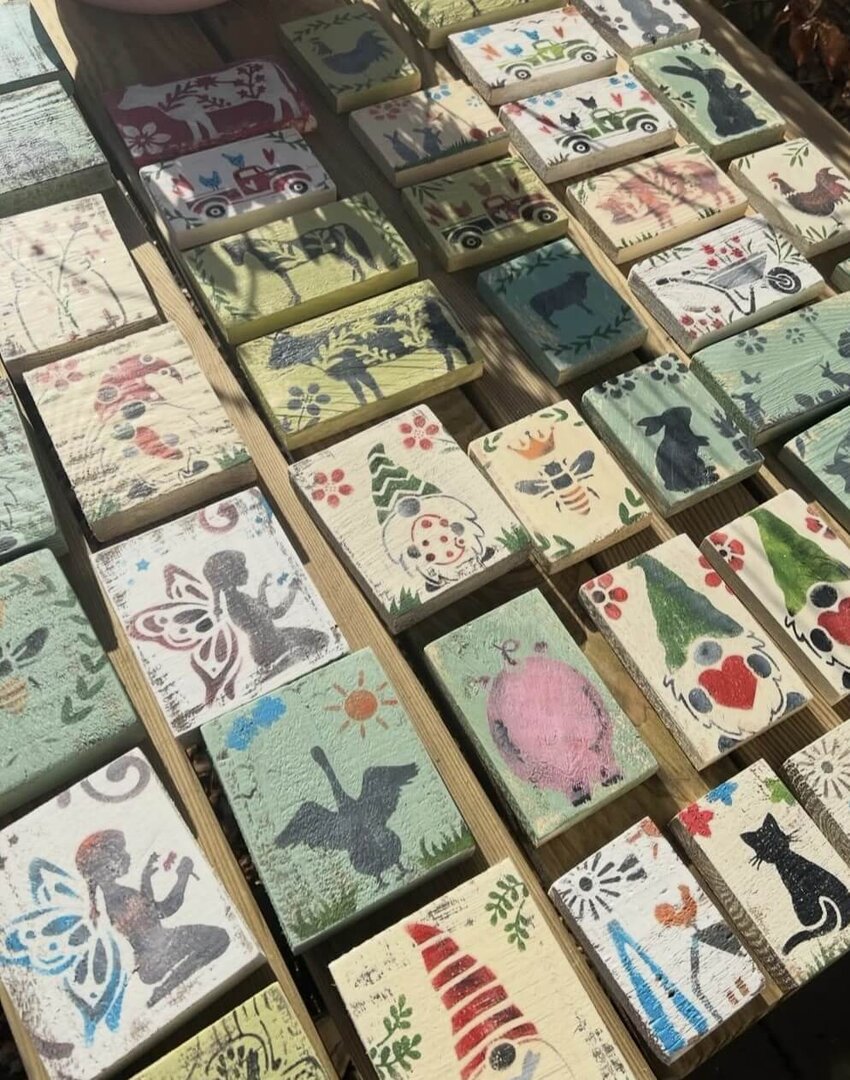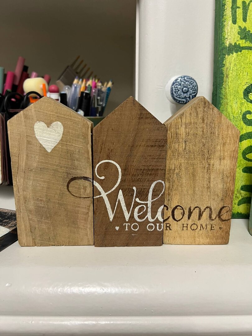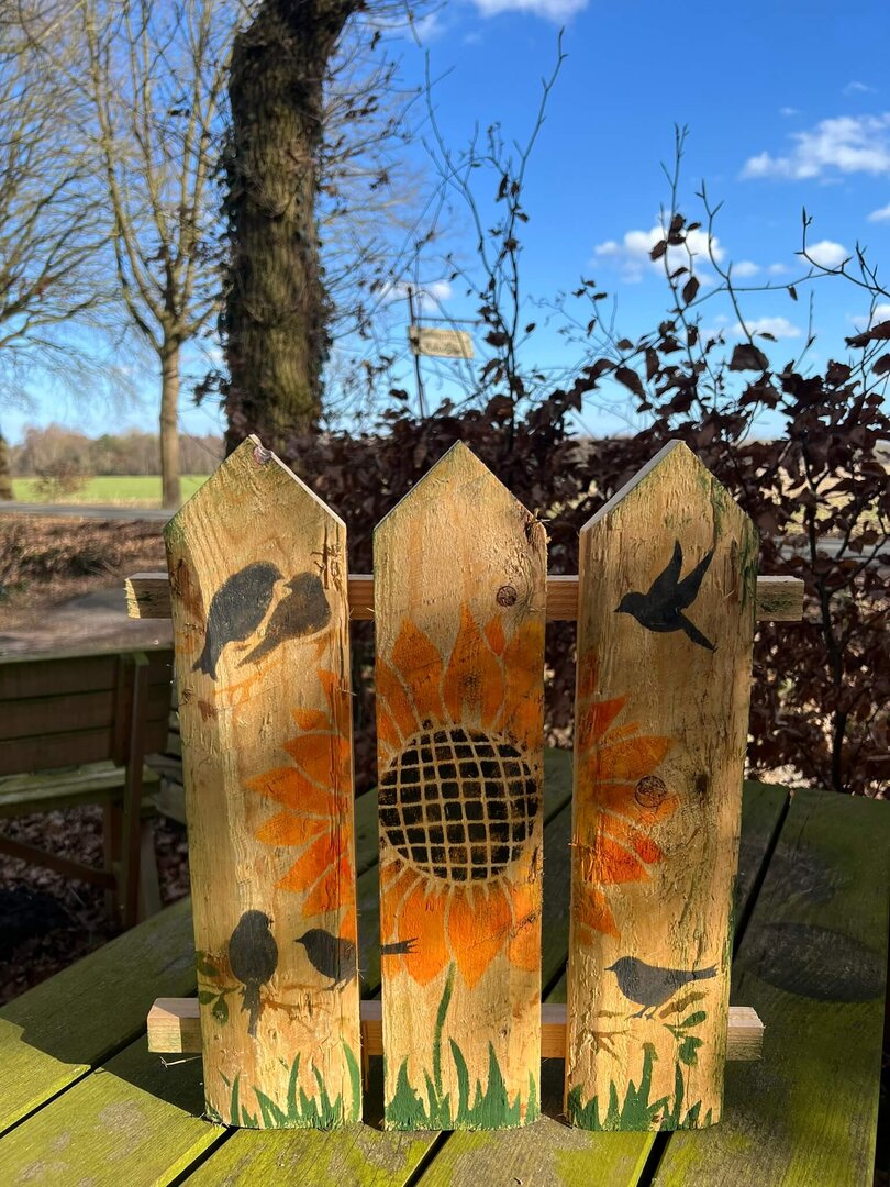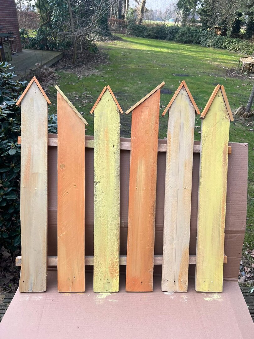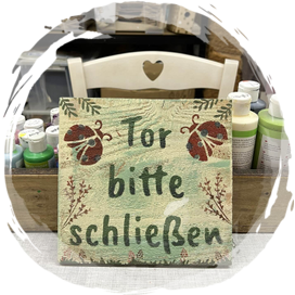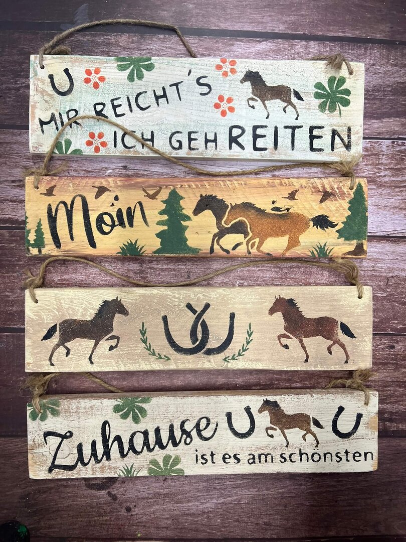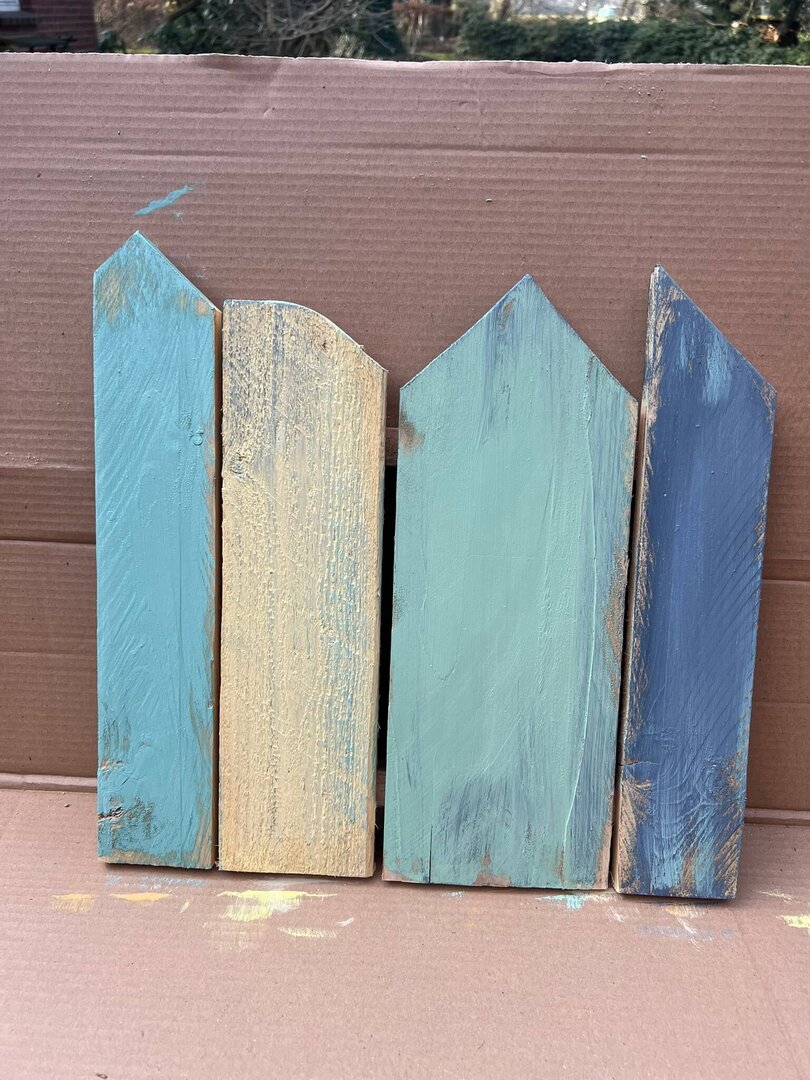 Alle Holzschilder sind bereits sorgfältig vorbereitet: geschliffen, grundiert und vorbemalt.