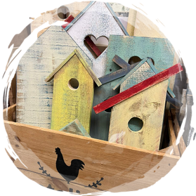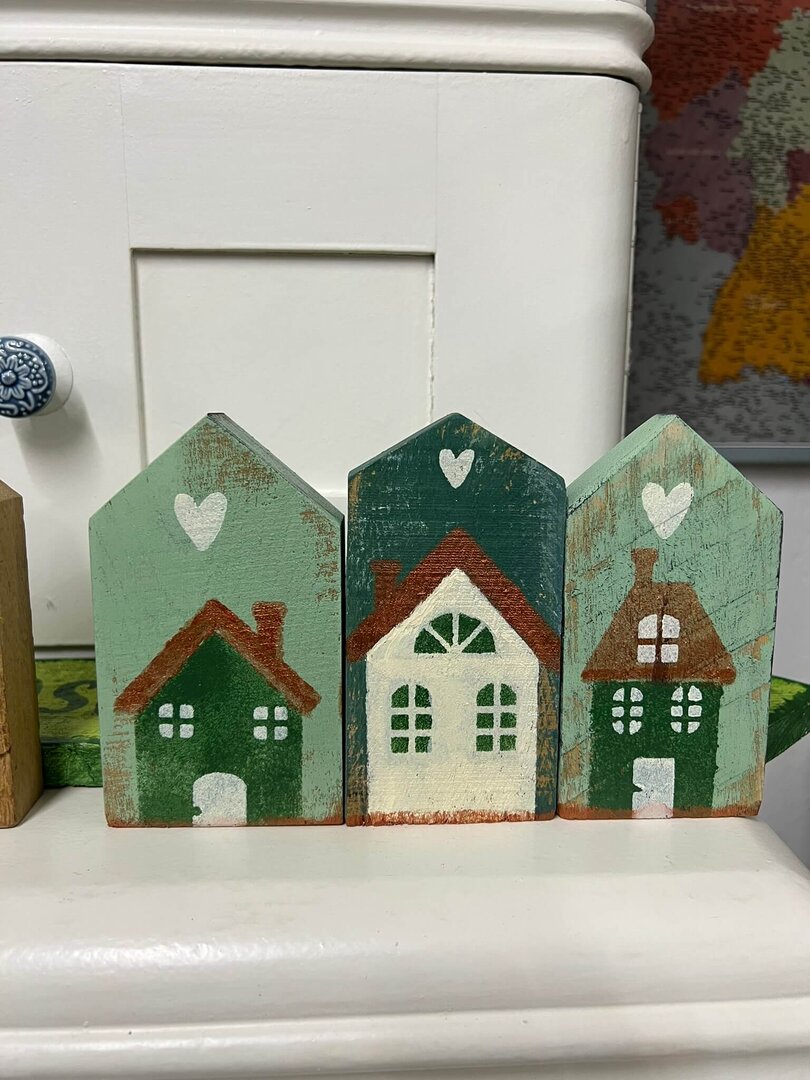 kleine Deko-Häuschen, Deko-Vogelhäuser, Dekozaun und verschiedene Hausformen.