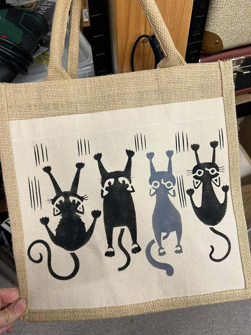 und Formaten sowie Fußmatten, Jute- und Stofftaschen, Jutebilder, Etuis, Kissenbezüge,