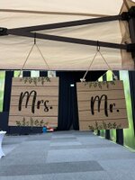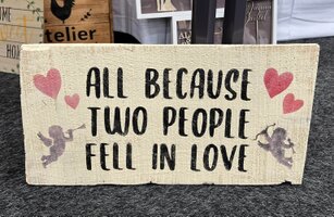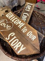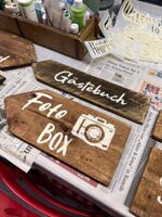 Ihr fertigt gemeinsam ein großes, individuelles Schild mit ihrem Namen – abgestimmt auf die Hochzeitsdekoration.